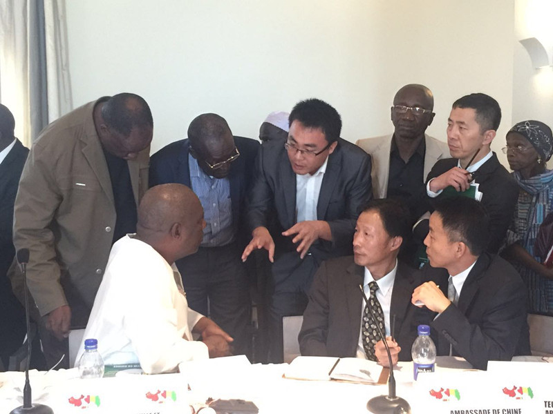 会议期间,几内亚国务部长卡索利、城市与国土整治部长卡马拉、贸易部长永布诺、渔业水产和海洋经济部长洛瓦等先后发言,对中国企业家代表团的到访表示热烈欢迎,介绍了几内亚投资环境和投资机会;中国驻几内亚使馆经商处王宝忠参赞代表使馆致辞,韦立集团孙修顺总裁代表企业家致辞;此外,8名中方企业家分别发言,介绍本企业的概况、强项和优势。发言结束后,企业家们与对口的几内亚部长一对一单独交流,进一步了解几内亚的行业政策和法律法规。