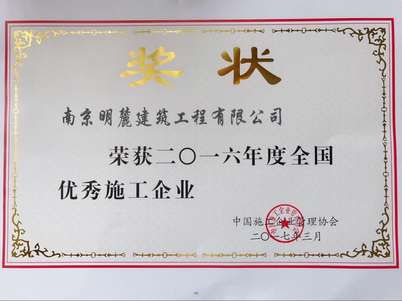 近日,经中国施工企业管理协会“三优”评审委员会审定并公示,南京明麓建筑工程有限公司获得2016年度“全国优秀施工企业”称号。