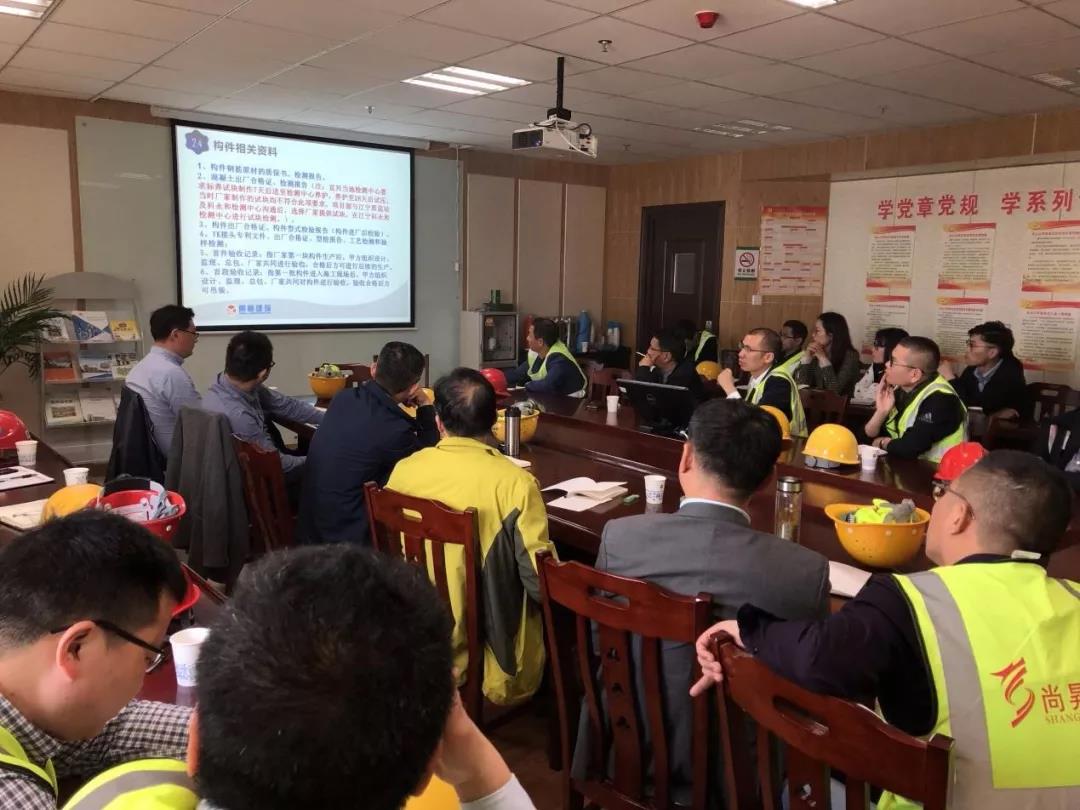 NEWS建筑资讯为加快公司全员对装配式项目的学习,提升东山小学装配式项目的管理水平,2019年4月7日上午,南京明麓建筑工程有限公司在东山小学项目部现场会议室组织召开了交流推进会。集团董事长易敏、常务副总裁、总工程师陆明琪、副总裁陶承民、智能服务中心、明麓公司常务副总刁小波、总工办、项目经理、项目技术负责人等27人参加了此次会议。