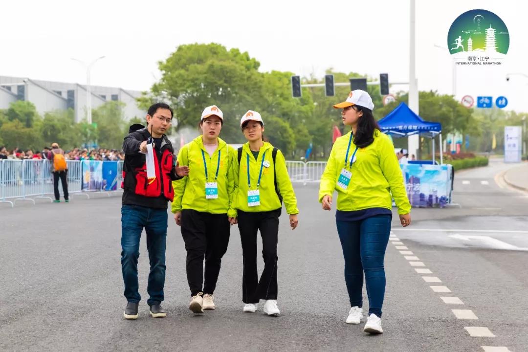 赛事当天志愿者共招募2019人,来自东南大学、南京航空航天大学金城学院、南京体育学院、南京体育学院奥林匹克学院、南京航空航天大学、江苏海事职业技术学院、金肯职业技术学院、南京理工大学、南京财经大学的学子们。比赛中,你们以强烈的使命感和责任感、认真辛勤的劳动、专业高超的服务水平和热情阳光的笑容感染了每一名选手,保障了赛事各项工作的顺利进行。你们在终点的鼓掌和微笑感染了每一位运动员,每一句加油,每一个递水的动作都化成一个响亮的名字——“志愿者”!