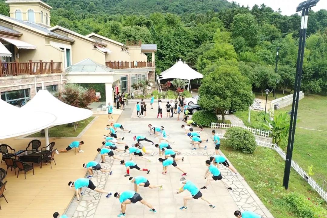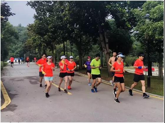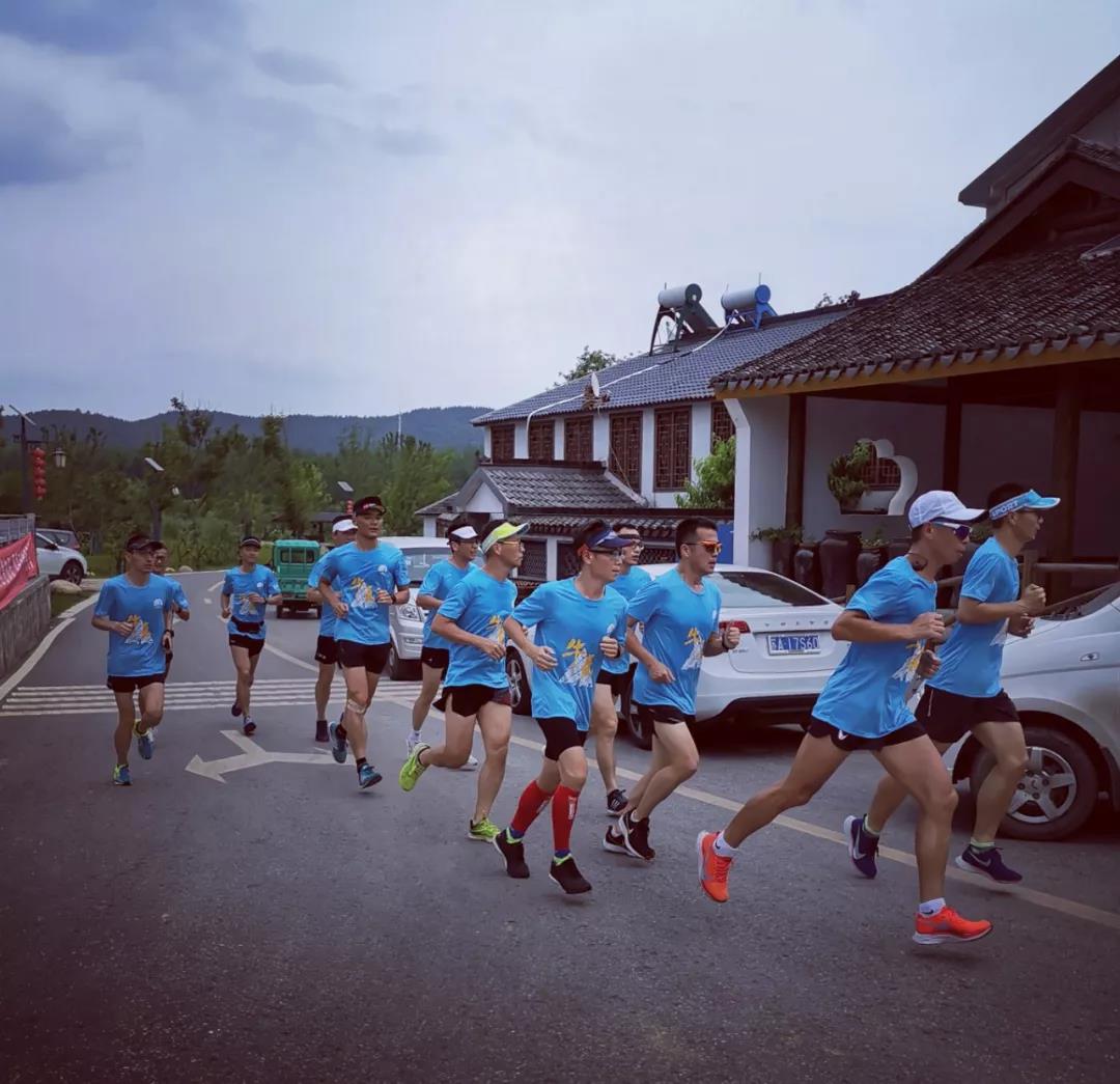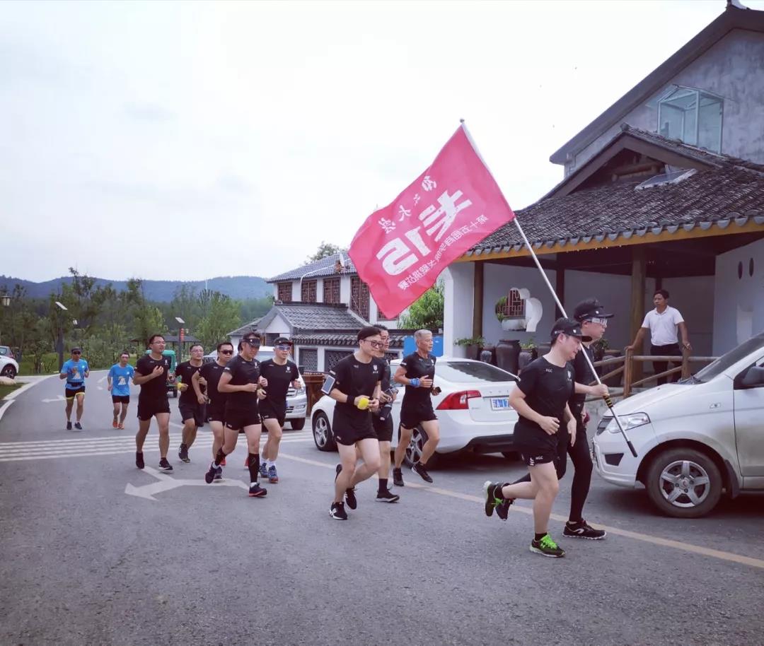 交流会后,在教练的带领下,三大院校的戈友们一起在天云阁户外广场进行热身。江苏健和文化体育产业发展公司赛事总监刘洋对天云阁周边的路线进行了线路勘测,合理规划了6KM的跑圈,每圈设置2个补给点,提供了盐丸、能量胶、饮料等补给品,并在各分叉路口安排了专人进行指挥。南京市江宁区马拉松运动协会安排了配速员带跑。新戈们在领跑员及老戈的带领下,根据教练的距离、配速计划,开始了第一天的跑程。当天下午天气闷热,但跑道周边的乡村风光秀丽,缓解了酷暑带来的不适,新戈们保持着良好的跑步节奏;后程突降大雨,戈友们仍然坚持在雨中跑完了20KM-25KM的训练计划,展示了各商学院卓越的拼搏精神。