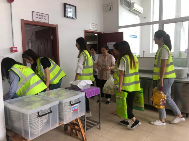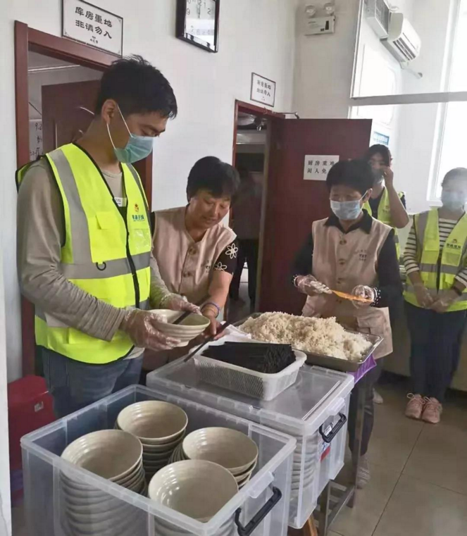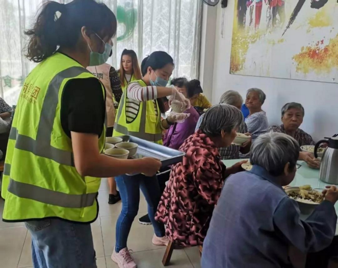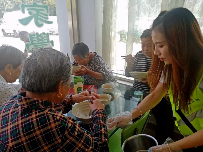 用餐期间,尚昇小伙伴们与义工家人们认真礼貌、有序地为老人们打饭、端汤。