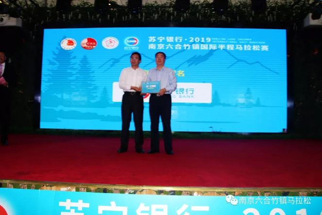 2019苏宁银行南京六合竹镇国际半程马拉松赛的成功举办,离不开社会各界的大力关注和支持。本次发布会上,竹镇镇人民政府刘孝慧副镇长与本届赛事总冠名苏宁银行代表举行了签约仪式,随后,组委会代表向官方赞助商代表授予荣誉牌匾,感谢社会各界力量一同为“竹马”提供大力支持。
