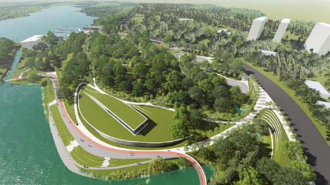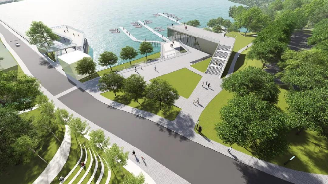 水上运动中心包括水库、龙舟码头、艇库、多功能配套用房等。汤山体育运动公园是一个以滑板项目的特色场馆为依托,以体育俱乐部为内核,集健康、文化、休闲、教育培训等功能于一体的综合型项目。在运营过程中,体育公园突破传统单一体育场所的体验,串联起更多样化的需求:既能举办高水平体育赛事和大型活动,也能满足俱乐部培训及市民日常健身娱乐和文化活动的需要。