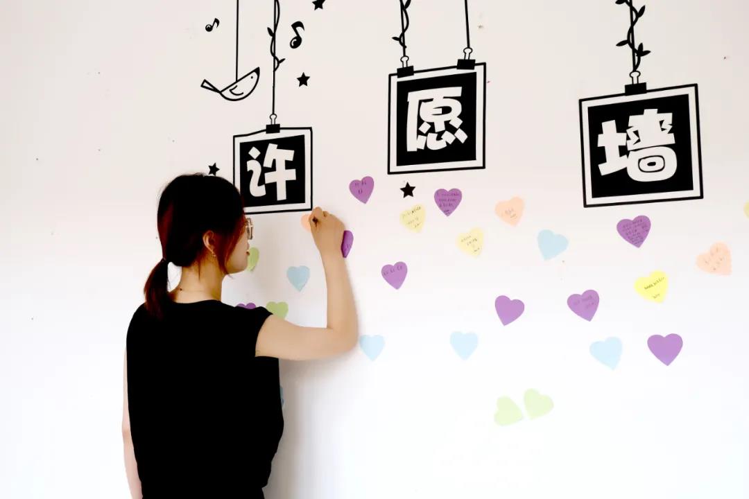 最后寿星们写下自己的生日愿望并在许愿墙下合影
